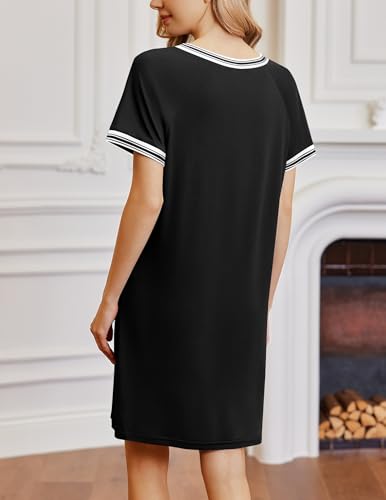 • Classic Sleepshirt Design: Featuring a stylish V-neck with contrast trim, short sleeves, and above-knee length, this womens night gown offers a relaxed boyfriend fit. The loose t-shirt style allows easy movement, making it ideal for lounging around the house or enjoying a restful sleeping