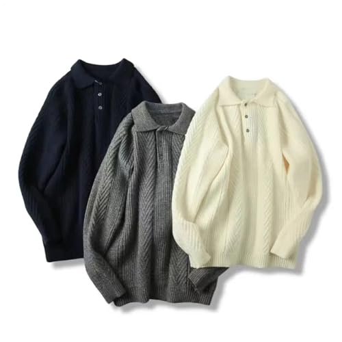 More information about Men’S Retro Jacquard Knit Sweater Thick Long Sleeve Lapel Collar Casual Pullover Jumper Tops