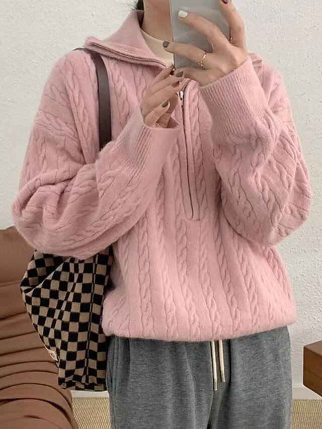 More information about Women's Sweater Fashion Casual Solid Color Ribbed Half Zip Knitted Long Sleeve Regular Tops Knit Outdoor Daily Weekend Pink Fall Winter