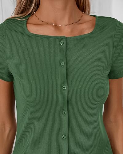 Womens Lightweight Summer Cardigan 2025 Short Sleeve Button Down Open Front Loose Fit Rib Knit Round Neck Cute Tops Clothes 7