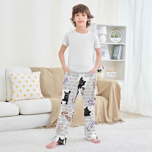 Boys' Pants Black Cats Brick Wall Long Bottoms Jogger Pants Elastic Waist Trousers with Pockets S-XL 7
