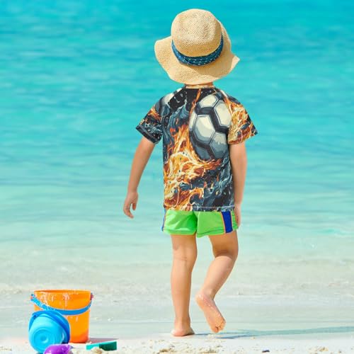 Kids Swimsuit Football Fire Sport Water Sunscreen T-Shirts Swimwear Sets UPF 50+ 2