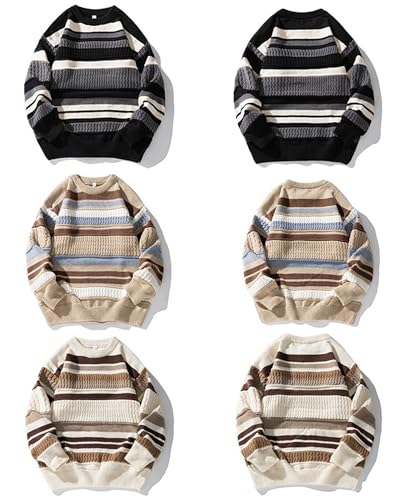 More information about Men's Vintage Sweater Oversized Cable Knit Crewneck Sweaters Casual Long Sleeve Striped Pullovers