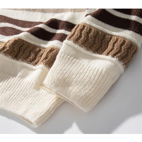 Men's Vintage Sweater Oversized Cable Knit Crewneck Sweaters Casual Long Sleeve Striped Pullovers 4