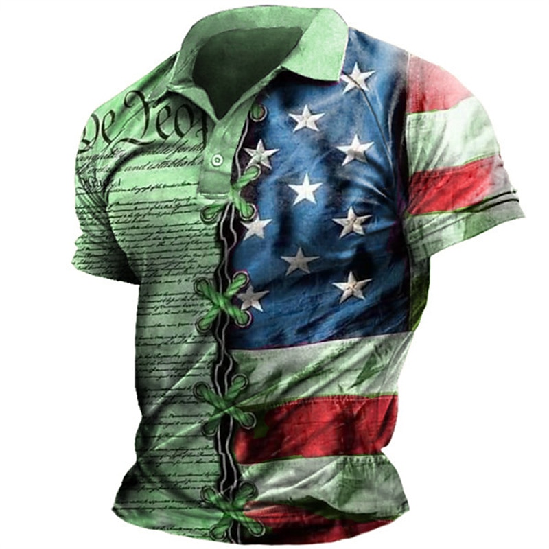Men's American Flag Veterans Polo Shirts Golf Shirt Short Sleeve Polo Shirts Collared Shirts Casual Streetwear Vacation Wear Party Outfits 3D Print Buttons Light Green Blue Purple 3