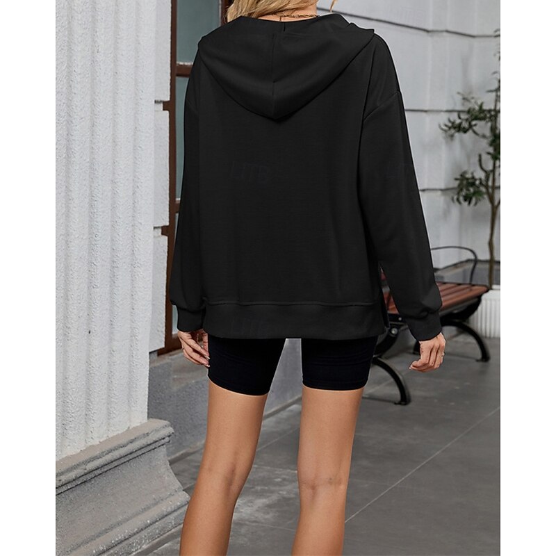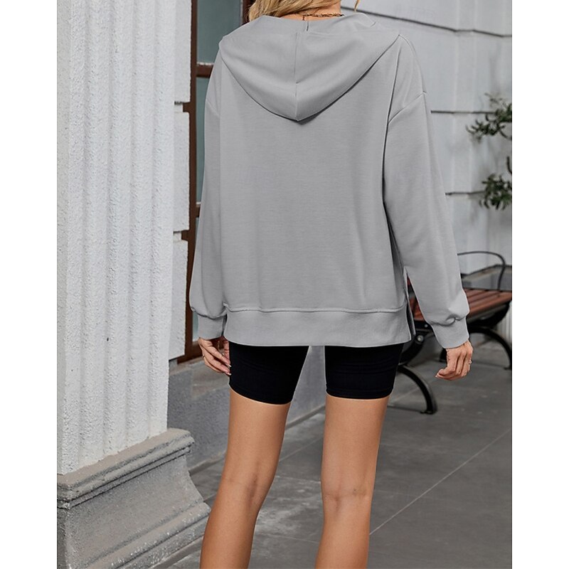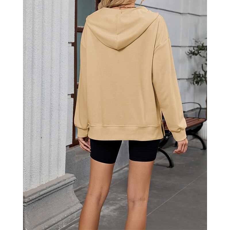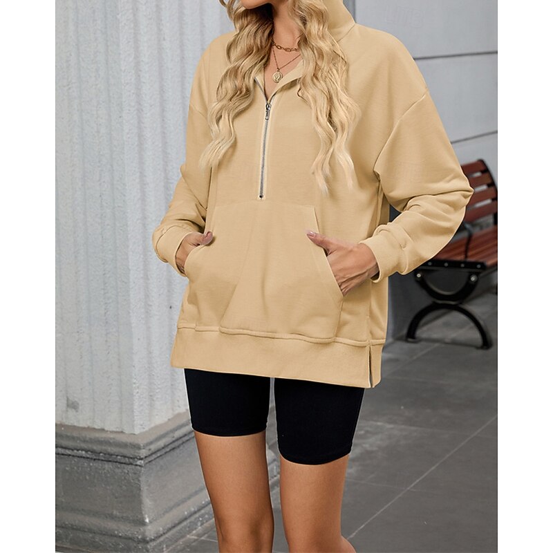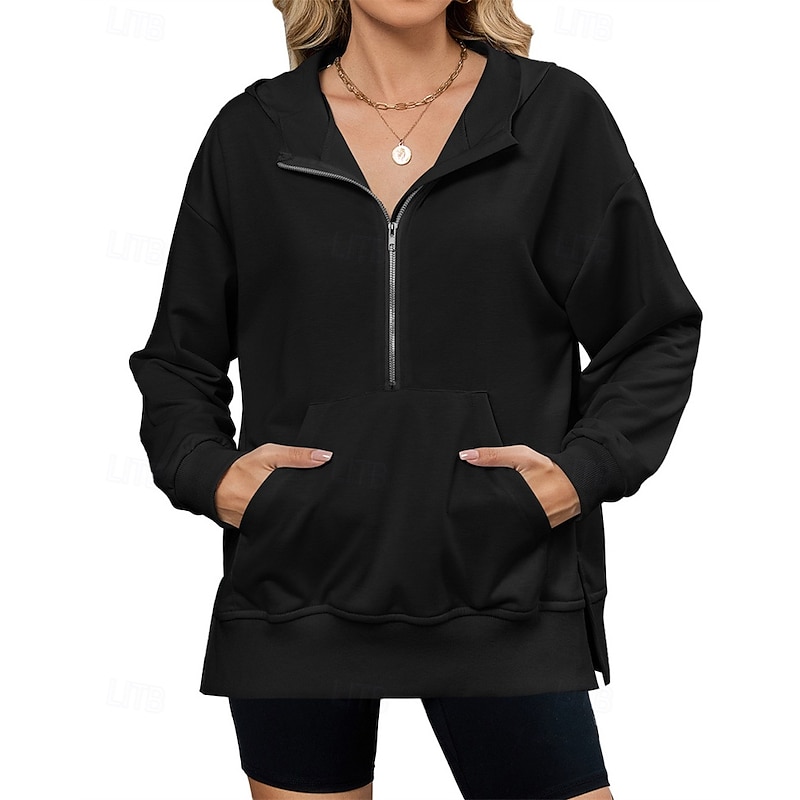 More information about Women's Pullover Hoodie Sweatshirt Plain Streetwear Casual Comfy Long Sleeve Hooded Regular Tops Street Holiday Going out Half Zipper Quarter Zipper Front Pocket Quarter Zip Black Pink Blue Khaki Gray