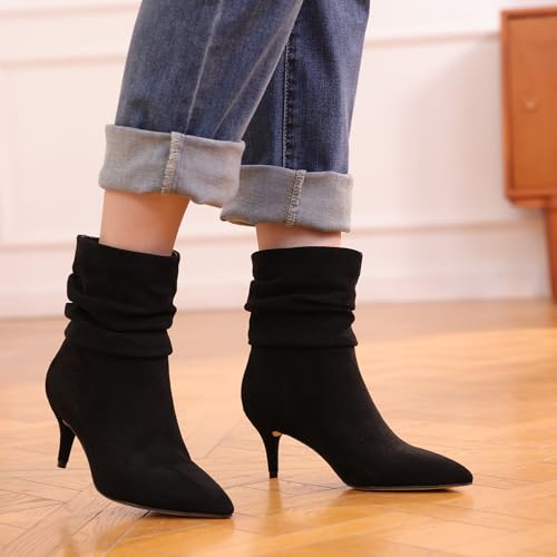 CosyFever Sexy Slouch Ankle Boots for Women with Fashion Mid Stiletto Heels Pointed Toe Bootie 6