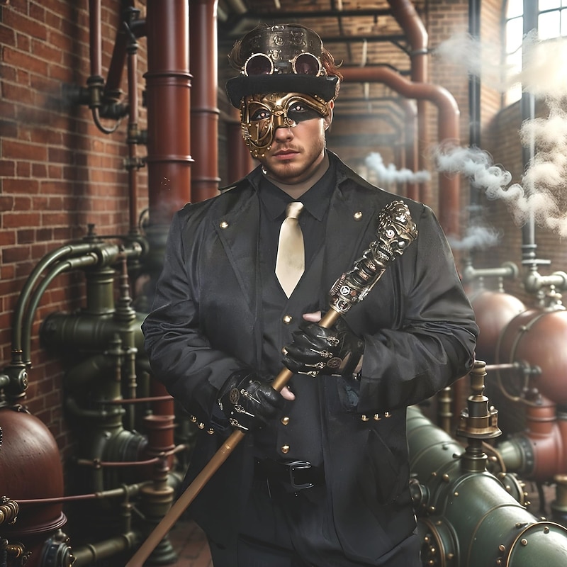 With a distinctive vintage brass finish, this mask exudes an air of mystery and adventure. It showcases intricate design elements, including rivets, gears, and cogs, meticulously adorning the mask to create a textured, industrial look. The bold 3D embellishments capture the essence of Victorian-era machinery, making it a standout accessory for any occasion.