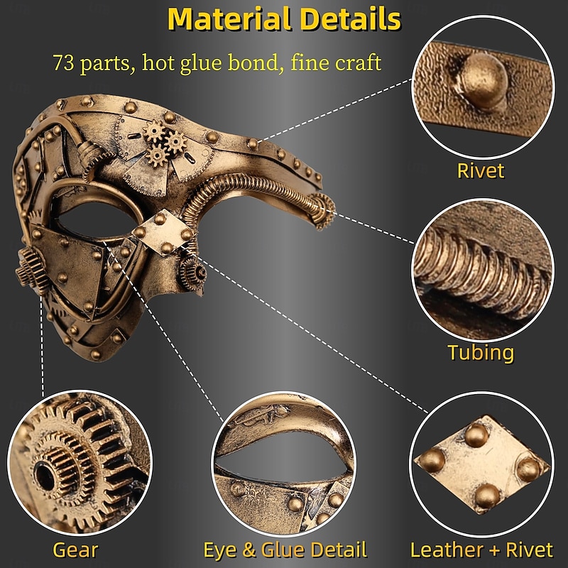 More information about Metal Cyborg Halloween Venetian Mask Phantom Of The Opera Carnival Mask Steampunk Adults' Men's Women's Halloween Carnival Mardi Gras Party Masquerade Easy Halloween Costumes Dress Up