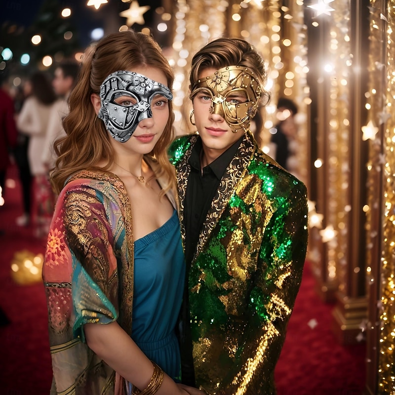 Metal Cyborg Halloween Venetian Mask Phantom Of The Opera Carnival Mask Steampunk Adults' Men's Women's Halloween Carnival Mardi Gras Party Masquerade Easy Halloween Costumes Dress Up