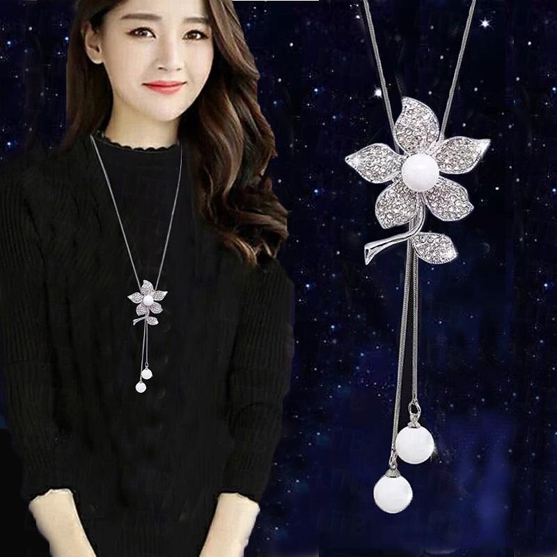 HOT ! Korean Version Of Autumn And Winter Crystal Sweater Chain Necklace Wholesale High-end Women's Long Chain Versatile Tassel Pearl Pendant With Accessories