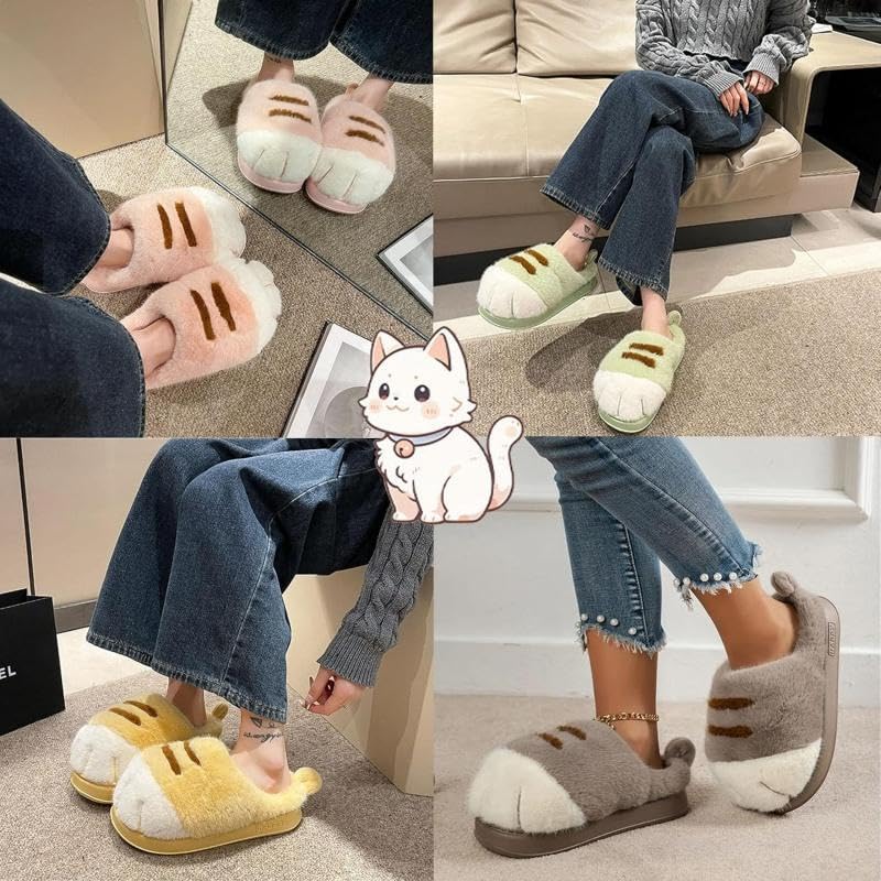 HOT ! Cat Paw Slippers, 3D Cat Paw Slippers for Women, Non-slip Plush Fuzzy House Shoes with Cute Paw Prints