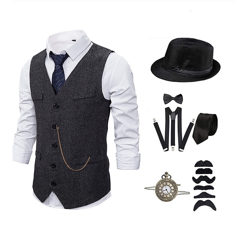 Vintage 1920s Outfits Party Costume The Great Gatsby Fancy Dress Men's Party Formal Evening Party & Evening Adults' Cravat Vest Hat All Seasons 11