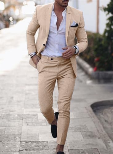 Men's Suits 2 Piece Set,One Button Linen Cotton Solid Color Suit,Mens Suits Classic Fit 2 Piece for Beach 5