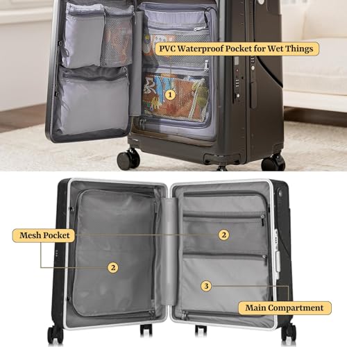 Hardshell Carry On Suitcase with Child Seat, Black Travel Luggage with Front Compartment & 4 Lockable Spinner Wheels, TSA Lock, USB Port, Luggage Cover, Safty Seatbelt (Front-Opening Black, 20 Inch) 6
