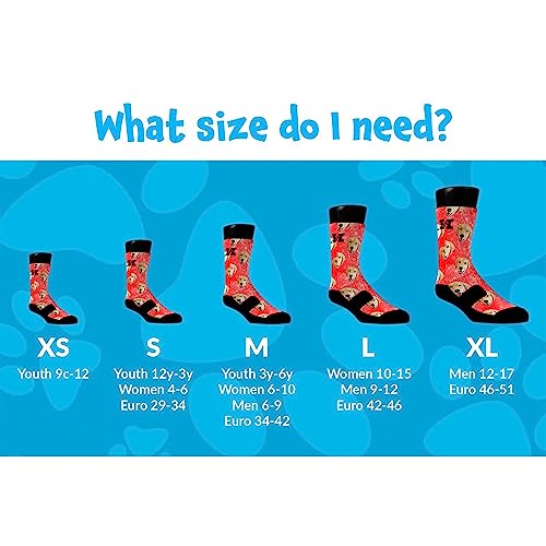 • XS Youth 9-12 US adult sock, Small 4-6 US US adult sock, XL 12-17 US US adult sock, Medium 6-9 US adult sock, Large 9-12 US adult sock