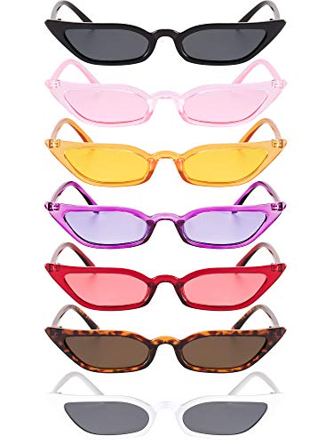Zhanmai Retro Small Cat Eye Sunglasses Vintage Square Shade Women Cute Skinny Cat Eye Eyewear (7 Pairs) 7