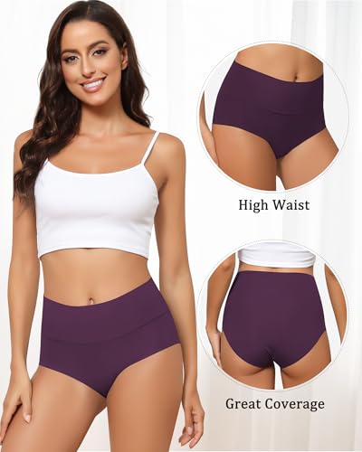 6 Pack Women's High Waist Seamless Underwear No Show Panties Full Coverage Briefs 7
