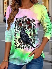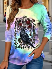 More information about By Sarah Richter Halloween Women's T Shirt Skulls Crew Neck Long Sleeve Tunic Graphic Tie Dye Vintage Stylish Classic Regular Tops Daily Print Pink Purple Green Fall