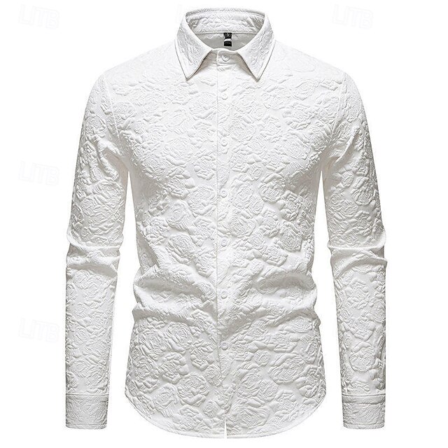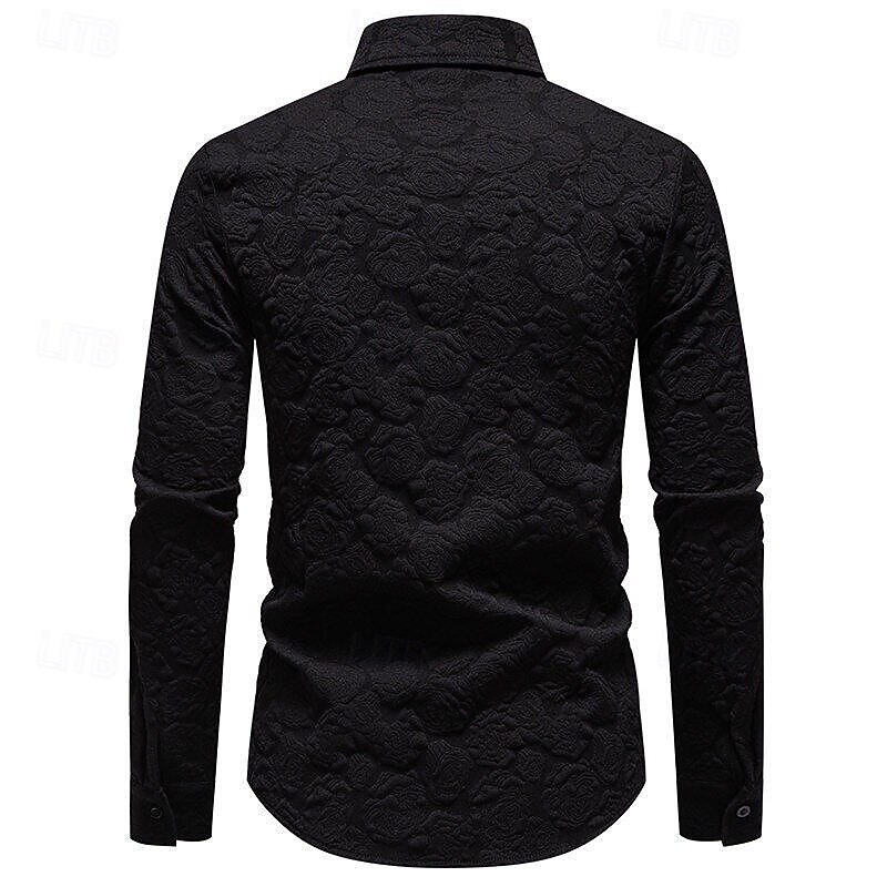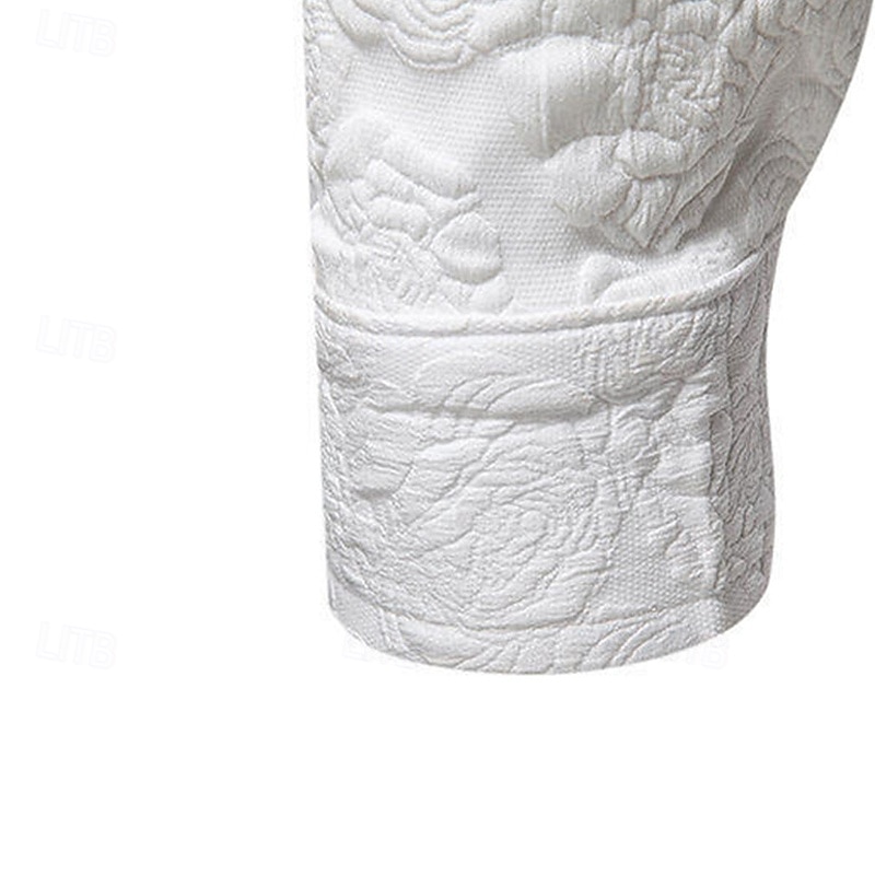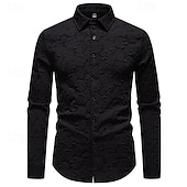 More information about Men's Shirt Summer Shirt Casual Shirt Beach Shirt Button Up Shirt Black White Long Sleeve Plain Lapel Vacation Hawaiian Jacquard Clothing Apparel Polyester Fashion Casual Comfortable