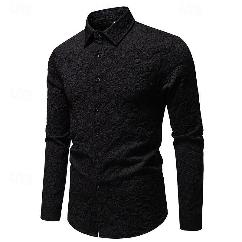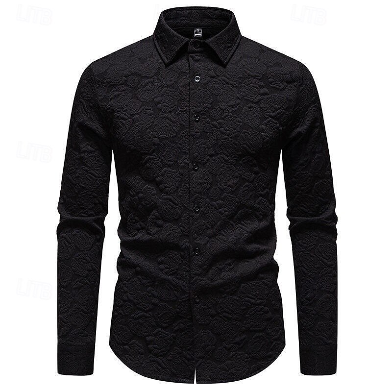 Men's Shirt Summer Shirt Casual Shirt Beach Shirt Button Up Shirt Black White Long Sleeve Plain Lapel Vacation Hawaiian Jacquard Clothing Apparel Polyester Fashion Casual Comfortable 13