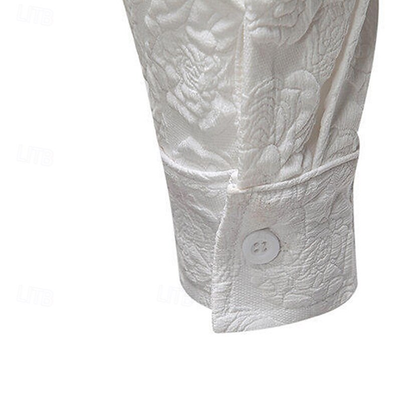 Men's Shirt Summer Shirt Casual Shirt Beach Shirt Button Up Shirt Black White Long Sleeve Plain Lapel Vacation Hawaiian Jacquard Clothing Apparel Polyester Fashion Casual Comfortable 6