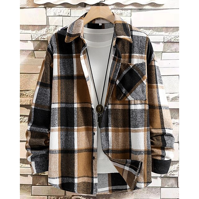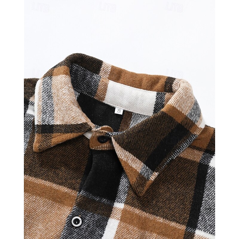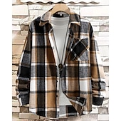 More information about Men's Shacket Shirt Jacket Winter Jacket Plaid Vacation Daily Wear Coffee Long Sleeve Lapel Fall Winter Clothing Apparel Pocket