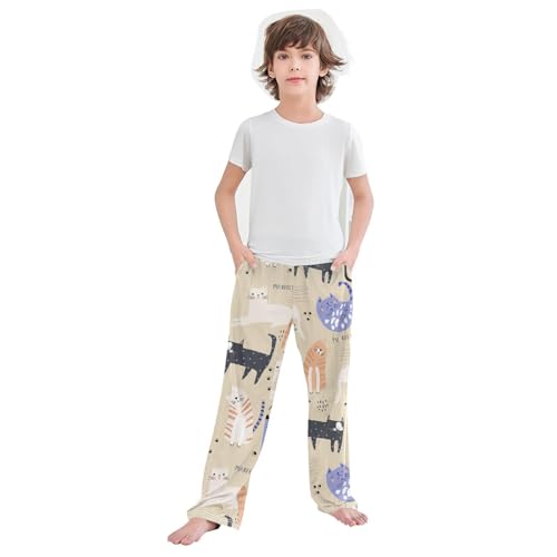 Boys' Pants Animal Cute Colorful Cats Kitten Long Bottoms Jogger Pants Elastic Waist Trousers with Pockets S-XL 6