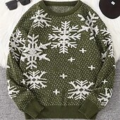 More information about Christmas Men's Snowflake Pullover Sweater Jumper Knitwear Crewneck Casual Vacation Home Street 3D Print Knitting Keep Warm Long Sleeve Spring Fall Winter Black Green
