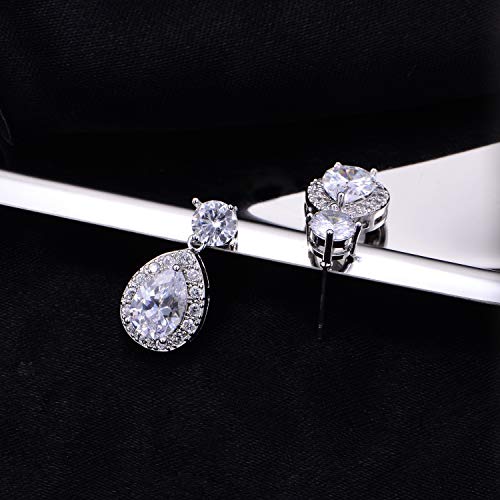 CZ Teardrop Dangle Earrings for Women Small Sterling Silver Crystal Cubic Zirconia Simulated Diamond Rhinestone Birthstone Bridal Drop Earrings for Wedding Bride Bridesmaids Mother of Bride Gift 4