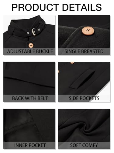 • 【Feature】: This trench coat features stand collar and single-breasted closure, two side pockets, inner pocket. split hem, slim fit, exquisite lining. The collar design has an adjustable buckle, it will take you through the winter with style and confidence.