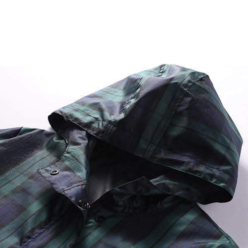 • Design: Our green plaid long raincoat. The long design of this raincoat for women protects you and your clothes from rain and dust. With hood, drawstring, zip and front pocket.