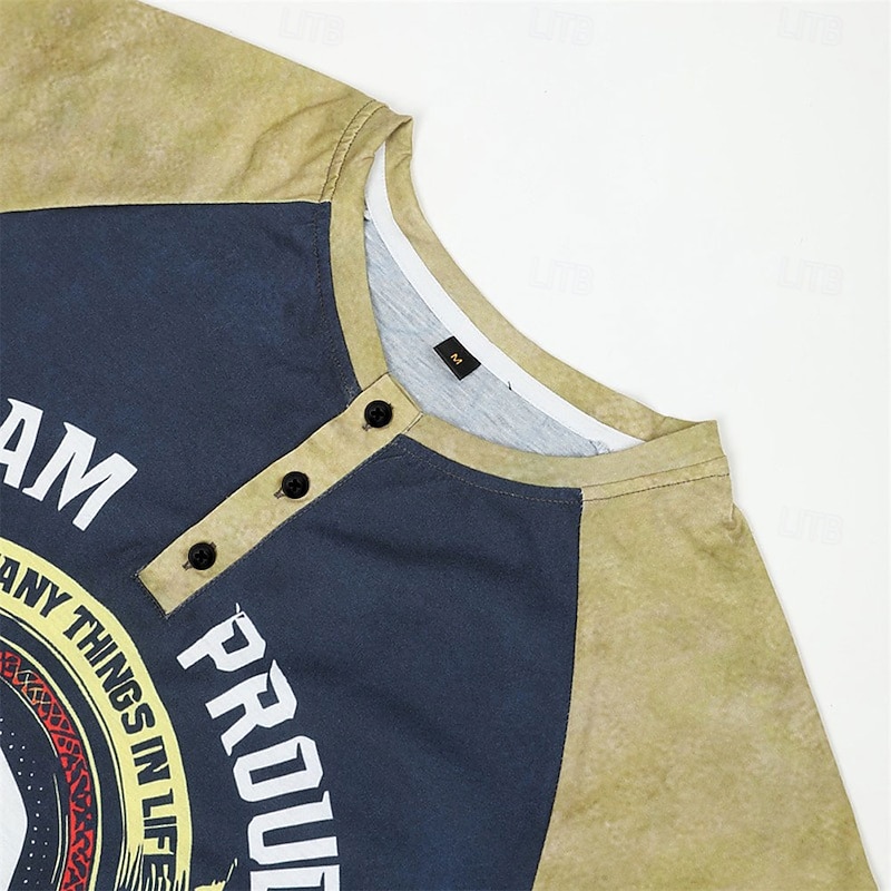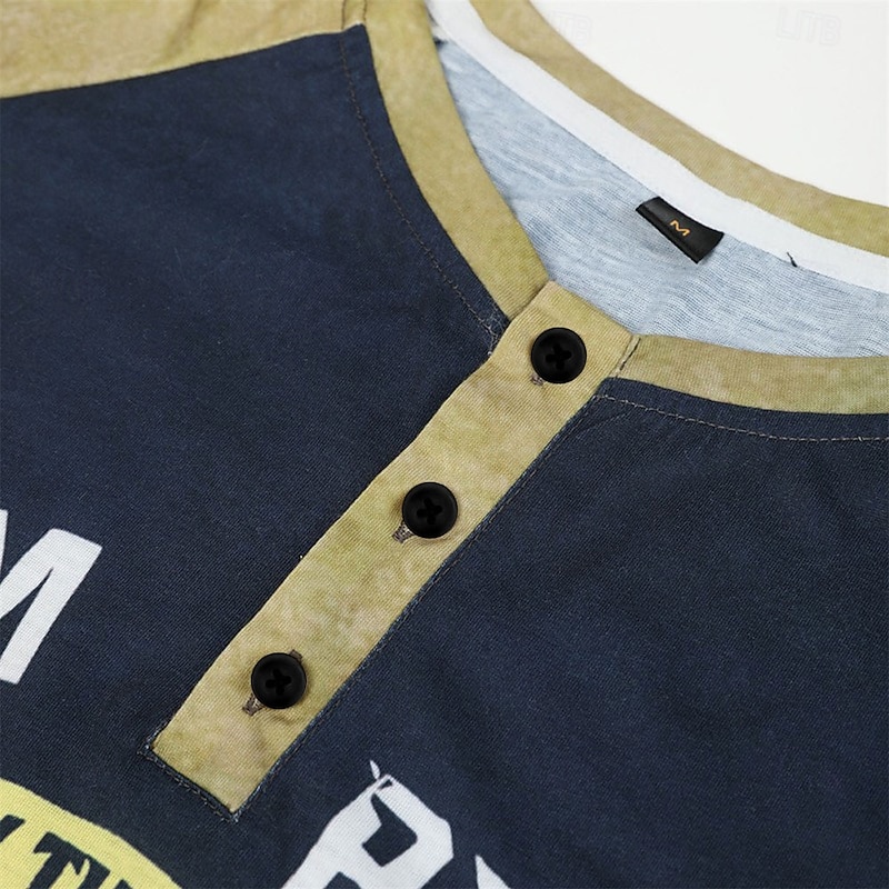 More information about Men's Color Block Hand T Shirt Vintage Shirt Henley Shirt 3D Print Vintage Designer Basic Outdoor Daily Sports Summer Black Blue Brown Green Henley Henley T-Shirt