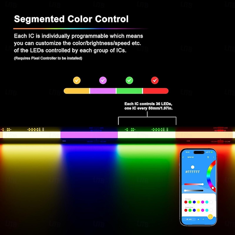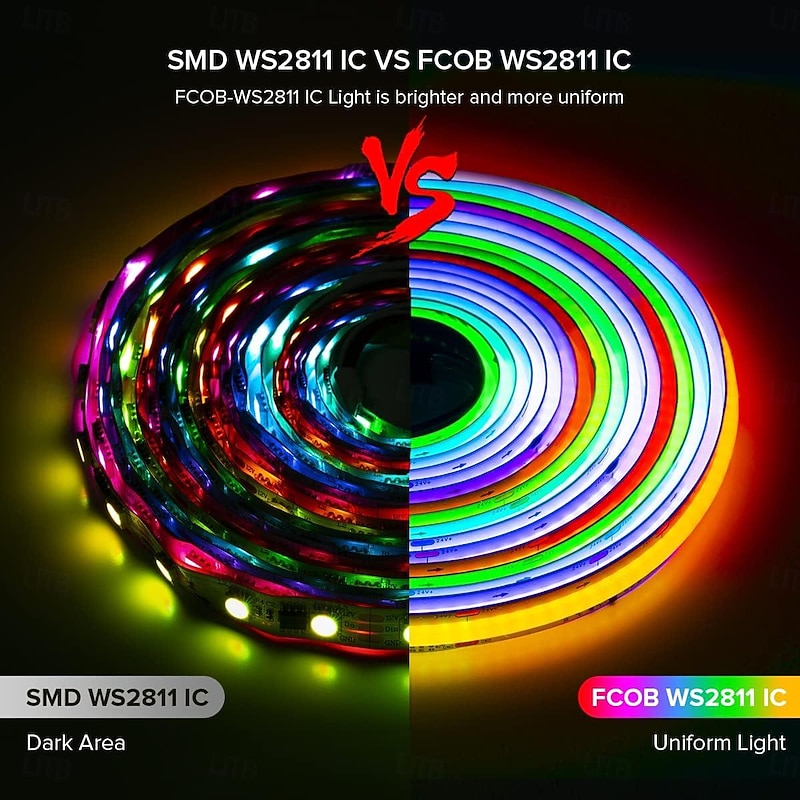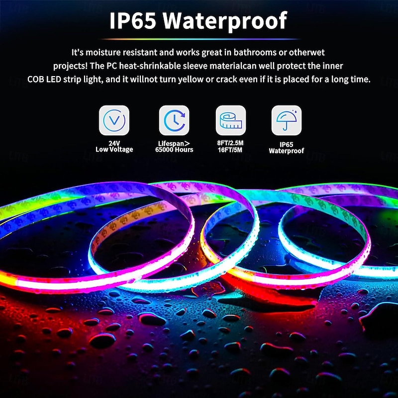 $57.99 - Waterproof RGB COB Strip Light 16ft 5M Smart IC Flexible DC24V LED Tape Light WS2811 Addressable RGB with RF Controller or WIFI Controller Suitable Party Home Office DIY Lighting Projects 2025. Shop for cheap COB Strip Lights online? Buy at lightinthebox.com on sale today!