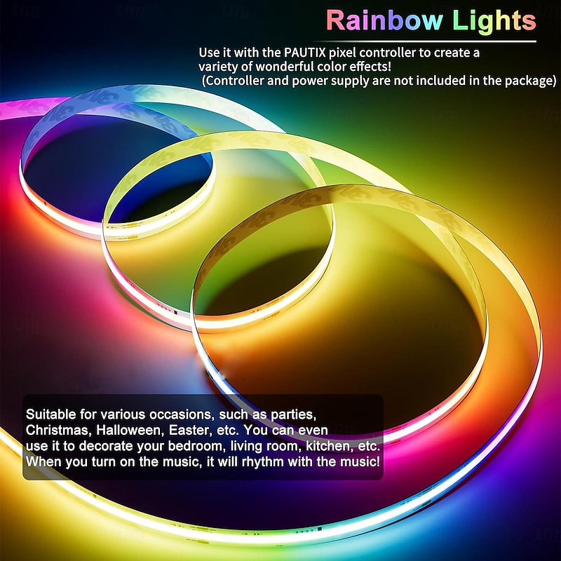 Waterproof RGB COB Strip Light 16ft 5M Smart IC Flexible DC24V LED Tape Light WS2811 Addressable RGB with RF Controller or WIFI Controller Suitable Party Home Office DIY Lighting Projects 21