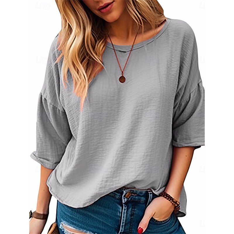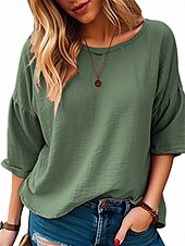 More information about Women's T Shirt Plain Fashion Modern Casual 3/4 Length Sleeve Crew Neck Regular Tops Daily Weekend Pink Blue Green Gray Summer Spring