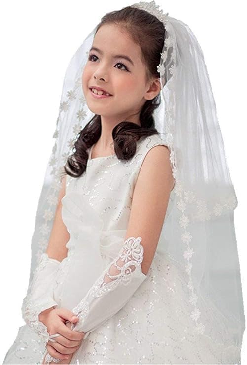 • Great head piece for first communion,party,wedding, bridal shower, prom or special occasion Beautifully Designed: Exquisite Lace Veil Elegant Appliques And Design, Flowers And Pearl Decorated Veil