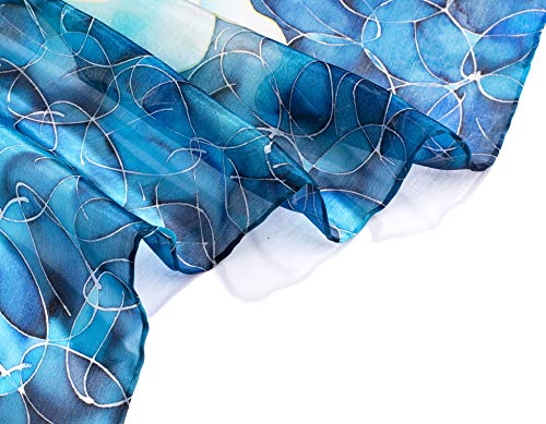 Invisible World Women's 100% Silk Hand Painted Scarf Square Roses French Blue 5