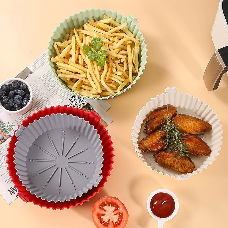 HOT ! 2PCS Reusable Air Fryer Silicone Pot Oven Baking Tray for Pizza Airfryer Silicone Basket Fried Chicken Grill Pan Mat for Kitchen