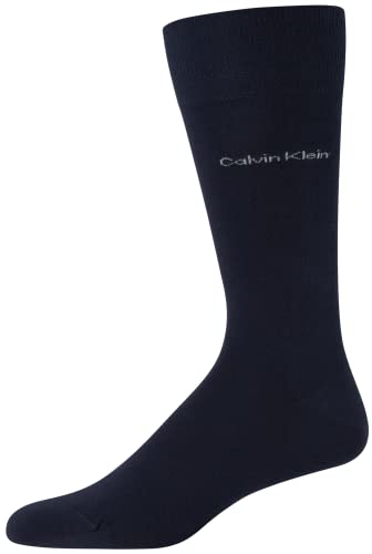 Calvin Klein Mens Dress Socks - 2 Pairs Egyptian Cotton Blend Comfort Stay Up Cuff Crew Socks for Men (7-12), Size 7-12, Navy 6