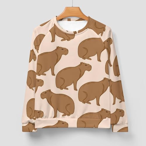 HOT ! VOSERY Brown Capybara Sweatshirt for Men, Crewneck Mens Hoodies, Long Sleeve Pullover Sweaters Casual Tops