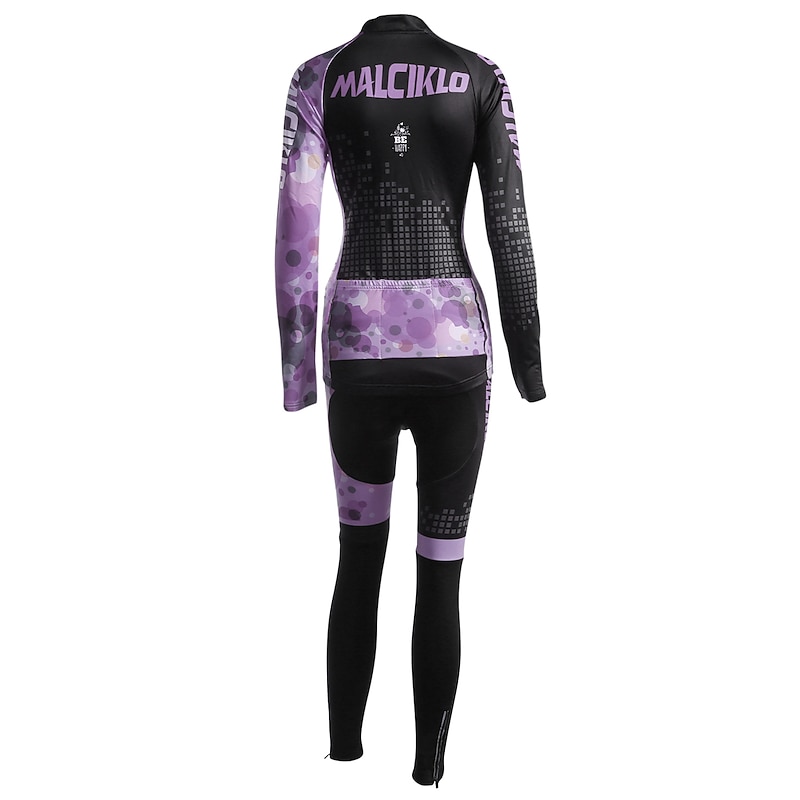 Malciklo Women's Cycling Jersey with Tights Long Sleeve Mountain Bike MTB Road Bike Cycling Fall Winter Yellow Red Blue British Plus Size Bike Fleece Lining Fleece Velvet Lycra Sports Patterned 19