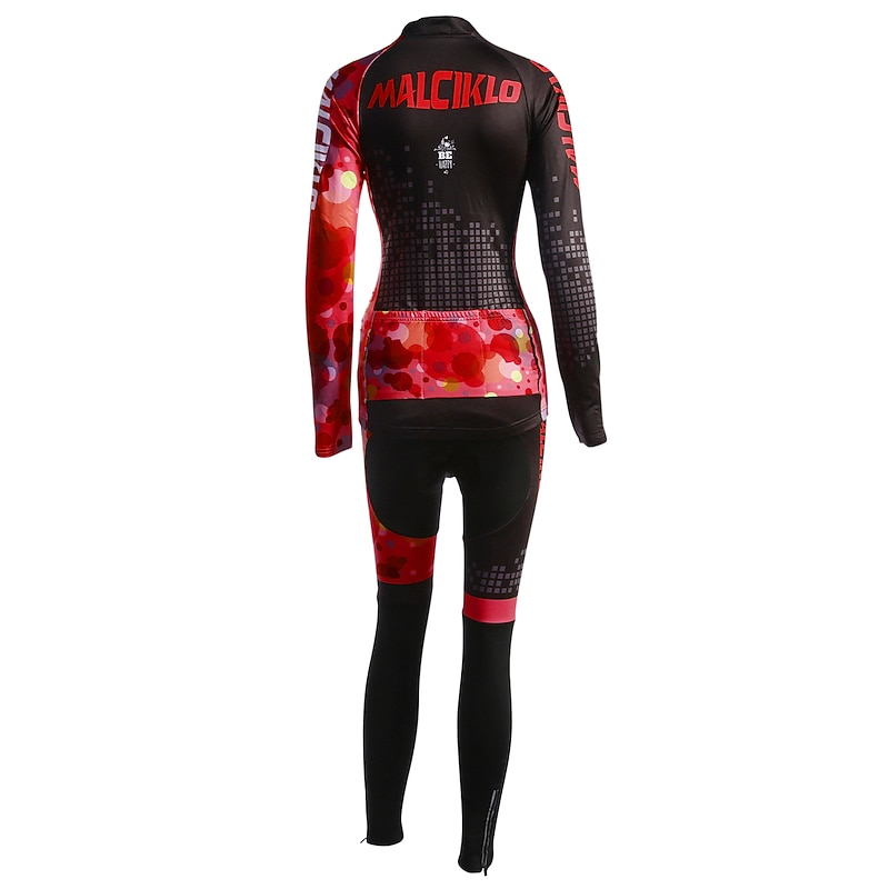 Malciklo Women's Cycling Jersey with Tights Long Sleeve Mountain Bike MTB Road Bike Cycling Fall Winter Yellow Red Blue British Plus Size Bike Fleece Lining Fleece Velvet Lycra Sports Patterned 15