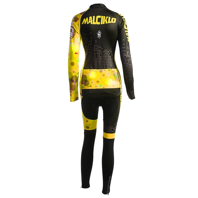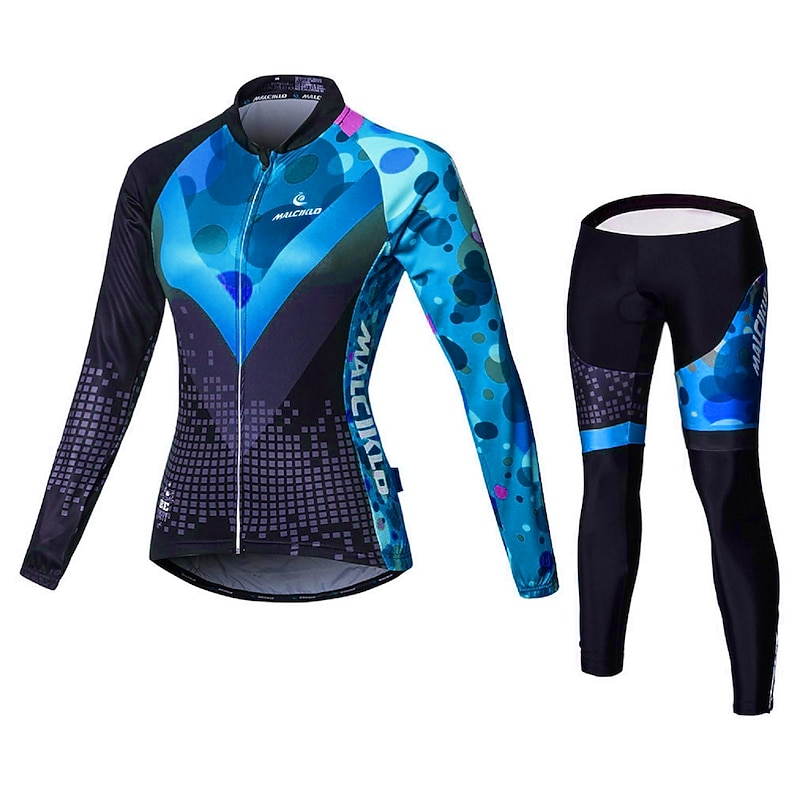 Malciklo Women's Cycling Jersey with Tights Long Sleeve Mountain Bike MTB Road Bike Cycling Fall Winter Yellow Red Blue British Plus Size Bike Fleece Lining Fleece Velvet Lycra Sports Patterned 17