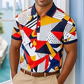 More information about Men's Polo Casual Turndown Short Sleeve Modern Color Block Abstract Buttons Summer All Seasons Regular Fit Red Polo