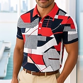 Men's Polo Casual Turndown Short Sleeve Modern Color Block Abstract Buttons Summer All Seasons Regular Fit Red Polo 10
