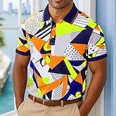 HOT ! Men's Polo Casual Turndown Short Sleeve Modern Color Block Abstract Buttons Summer All Seasons Regular Fit Red Polo