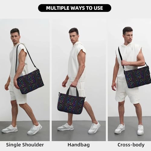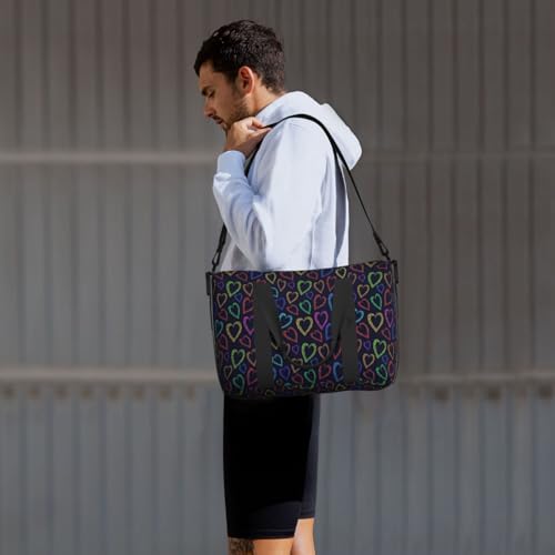 • Multi-Purpose Use: Designed for a variety of activities, this Colored Heart versatile bag is ideal for travel, weekend getaways, gym sessions, tennis, fishing, and more. It can function as a gym bag for men, a travel tote for women, or even as a women’s overnight bag