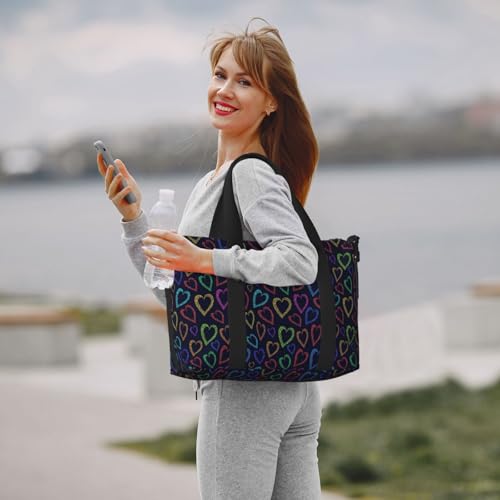 HOT ! Laptop Tote Bag for Women Work - Colored Heart Gym Bag for Women Men, Personal Item Crossbody Travel Bags Carry On, Overnight Weekender Bags for Women Travel