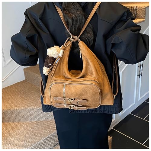 HOT ! Slouchy Shoulder Bag Suede Hobo Shoulder Bag with Cute Charm Buckle Front Pocket Vintage Convertible Suede Backpack Alt Retro Fall Purse for Daily Party Work 2025 (Black)